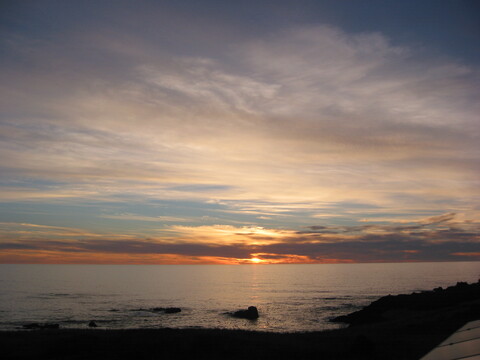 I noticed the lights of fishing boats out on the ocean. (I live on the coast of northern California.) "Hmm," I thought, "would they be out there if huge waves were on the way?" I couldn't go back to sleep, so I lay in bed watching my breath and thoughts that arose. I noticed no panic, only some planning: What should I take with me? I ran through possible necessities.